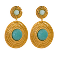 Embrace the beauty of the sea with these captivating earrings. Crafted from durable stainless steel, these dangles promise longevity and a radiant finish that stands the test of time. The stones, reminiscent of oceanic hues, add a touch of natural charm to your look.